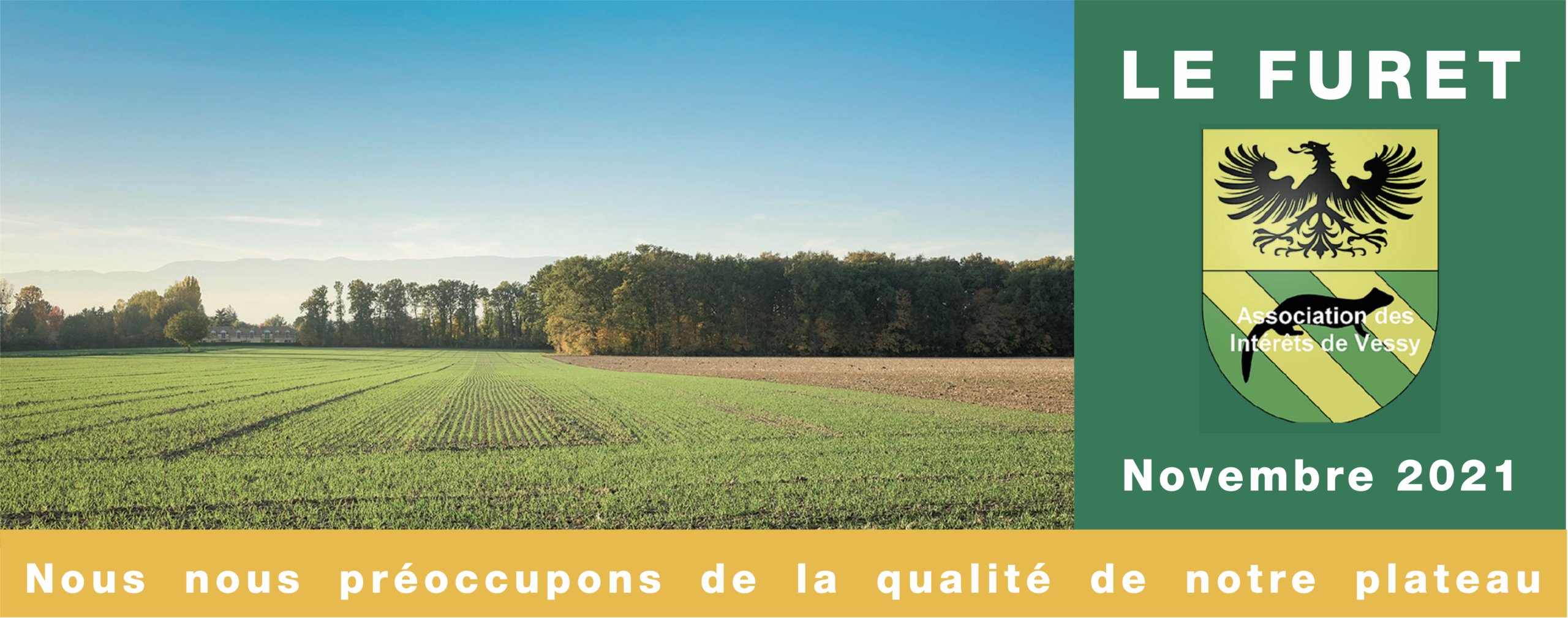 Vous trouvez Le Furet dans votre boîte aux lettres au printemps et en automne de chaque année. Notre magazine associatif reflète dans ses articles vos préoccupations et met l’accent sur l’actualité et les problématiques concernant le plateau de Vessy, voire notre commune tout entière. N’hésitez pas à nous écrire pour partager vos inquiétudes, vos questionnements ainsi que les aspects positifs de notre vie communautaire. L’AIV et le Furet ne vivent que par vous et pour vous !